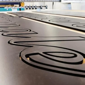 Abbiamo realizzato un insegna, con la tecnica di incisione su lastra in metallo. Il cliente applicherà un pannello luminoso sul retro del pannello, che consentirà alla luce di passare.
